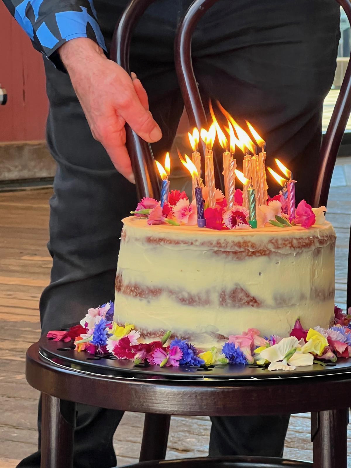Those assembled were treated to a performance by Eileen herself, as well as a screening of two films made by Eileen and collaborator Sue Healey: 2021’s The God Tree, and a preview of their latest work, Waterlily Variations. Plus a new version of what has become a bit of a tradition at Eileen’s birthday parties – the ‘Kiss of Fire’ dance tribute, with choreography by Anca Frankenhaeuser.